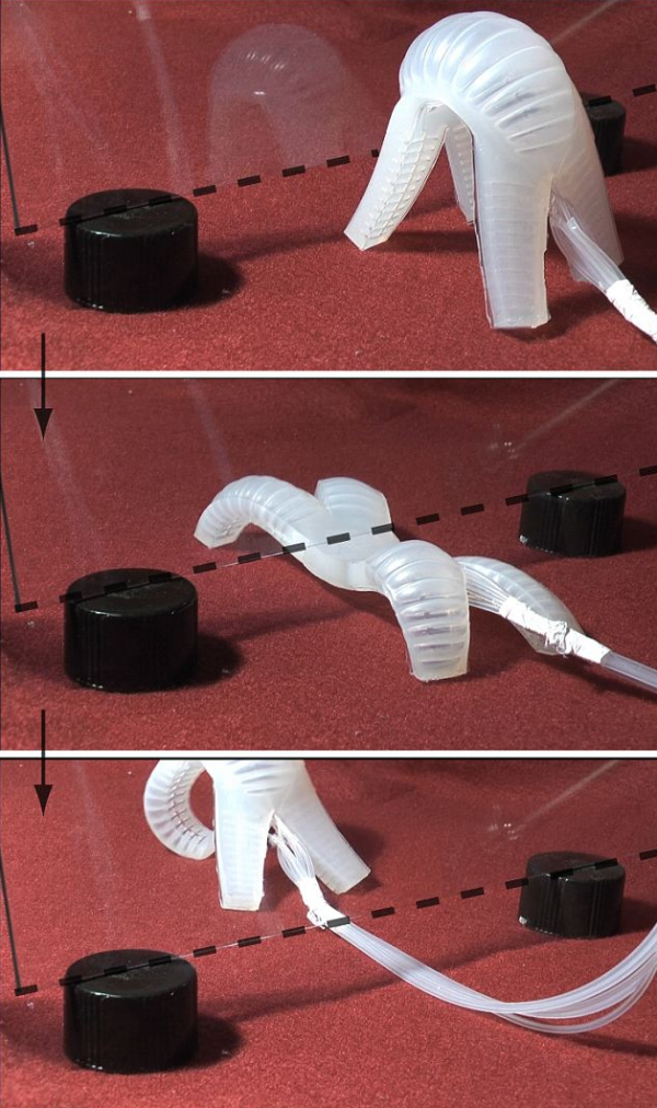 Αυτό το ρομποτάκι που κατασκεύασαν επιστήμονες του Harvard μπορεί να κινείται με διάφορους τρόπους και να αποφεύγει πολλά εμπόδια. Μπορεί να σέρνεται και μετά να ξανασηκώνεται. Οι κατασκευαστές του πιστεύουν ότι αυτά τα ρομπότ θα μπορούν να βοηθήσουν σε μεγάλες καταστροφές. Για παράδειγμα μετά από ένα σεισμό τα «soft robots» θα μπορούν να ανιχνεύουν επιζώντες αφού θα διαπερνούν όλα τα συντρίμμια.
