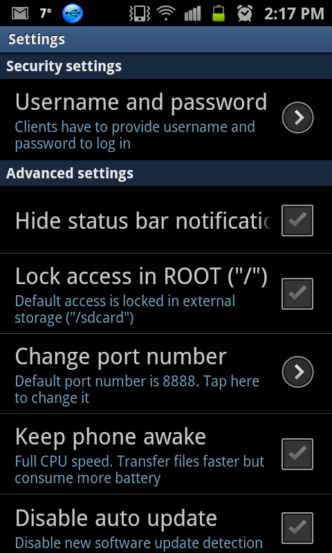 6. Στο κινητό σας, πατήστε πάνω στο Settings για να ρυθμίσετε την ασφάλεια, να ορίσετε πρόσβαση μόνο στη κάρτα μνήμης κ.α.
