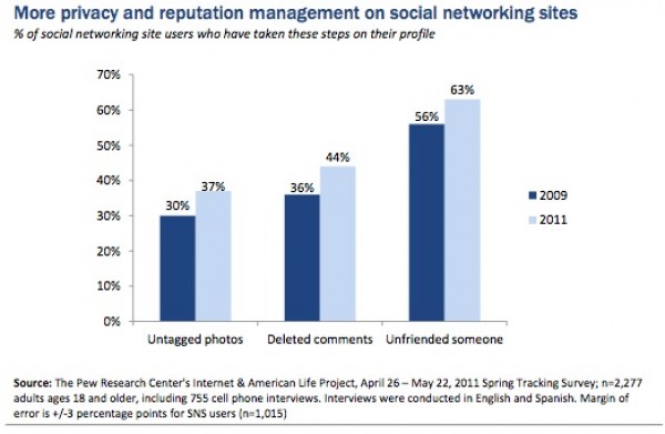 Σύμφωνα με έρευνα της Pew Internet & American Life Project οι χρήστες έχουν αρχίσει να είναι πολύ πιο προσεκτικοί σε ό,τι αφορά την παρουσία τους στο Facebook αλλά και στο Internet γενικότερα. Δεν αποδέχονται τόσο εύκολα αιτήματα φιλίας και επιπλέον έχουν πιο αυστηρές ρυθμίσεις απορρήτου στις υπηρεσίες που χρησιμοποιούν.
