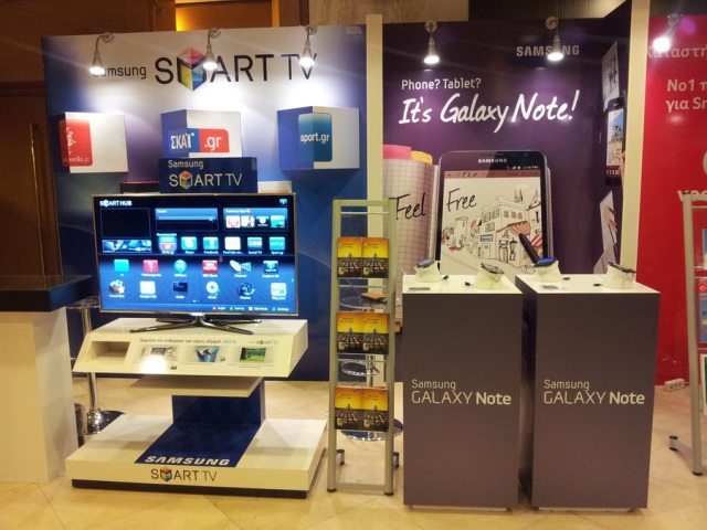 Παράλληλα, στα δύο ειδικά διαμορφωμένα περίπτερα της Samsung Electronics Hellas παρουσιάστηκαν η τηλεόραση Samsung D8000 με εφαρμογές και περιεχόμενο που αναπτύχθηκαν με συνεργάτες ειδικά για τους Έλληνες καταναλωτές και κατόχους Smart TV και το κινητό τηλέφωνο Samsung Galaxy Note.