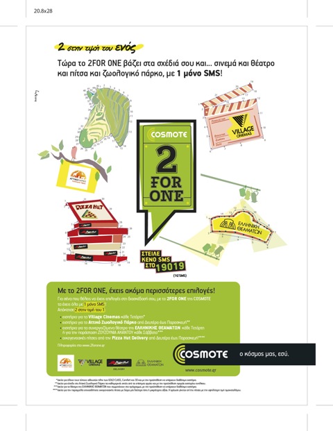 Ακόμα περισσότερες επιλογές στη διασκέδασή τους περιμένουν τους συνδρομητές της Cosmote με το αγαπημένο πρόγραμμα 2FOR ONE μόνο με 1 sms!
