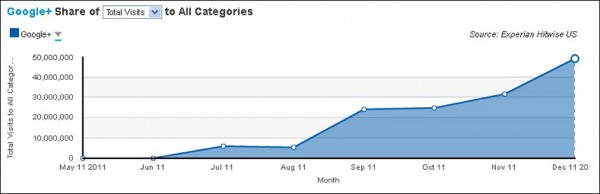 Σύμφωνα με έρευνα λοιπόν της Experian Hitwise, το Google+ είχε 61 εκατομμύρια επισκέψεις για το μήνα Μάρτιο. Αριθμός που μεταφράζεται σε αύξηση της τάξεως του 27% σε σχέση με τον Φεβρουάριο.