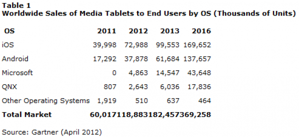 Είναι χαρακτηριστικό άλλωστε ότι οι πωλήσεις των tablets αυξάνονται ραγδαία. Ενώ το 2011 διατέθηκαν περίπου 60 εκατομμύρια, το 2012 ο αριθμός αυτός αναμένεται να διπλασιαστεί πλησιάζοντας τα 120 εκατομμύρια. Ακόμη πιο αισιόδοξες είναι οι προβλέψεις για τα επόμενα έτη αφού μέχρι το 2016 αναμένεται να ακουμπήσουν τα 370 εκατομμύρια τεμάχια.