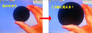 Η πρώτη συσκευή αποτελεί ένα ζευγάρι γυαλιών, τα οποία μεγεθύνουν τα τρόφιμα κατά 50% και δημιουργούν στους χρήστες τη ψευδαίσθηση ότι τρώνε περισσότερο. Ωστόσο, τα χέρια τους παραμένουν στο ίδιο μέγεθος. Τα πειράματα έδειξαν ότι με το πρώτο ζευγάρι γυαλιών, οι χρήστες έφαγαν 9.3% λιγότερο από εκείνους που δεν τα φορούσαν.
