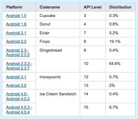 Βέβαια, οι χρήστες της έκδοσης Gingerbread εξακολουθούν να αντιπροσωπεύουν το μεγαλύτερο μερίδιο στο οικοσύστημα του Android με ποσοστό που φθάνει στο 65%.