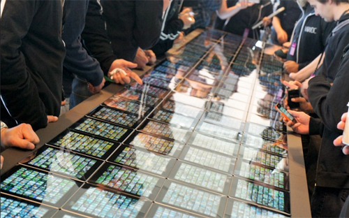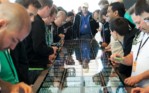 Η Apple λοιπόν όχι μόνο έβαλε το νέο iPad σε κάθε μέρος που μπορούσε, αλλά δημιούργησε και ένα υπερσύγχρονο τραπέζι από 100 iPad. Στο τραπέζι που βλέπετε στις φωτογραφίες έχουν στριμωχτεί 100 iPad με τη νέα οθόνη Retina (δηλαδή με 3.1 εκατομμύρια pixels το καθένα).