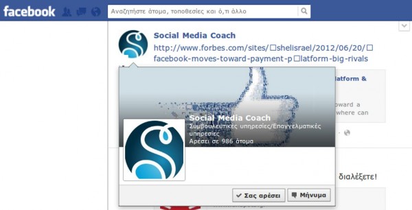 Μια ενδιαφέρουσα λειτουργία του Facebook είναι η «hovercard». Η παρουσίαση δηλαδή πληροφοριών όταν περνάμε το ποντίκι πάνω από την εικόνα προφίλ κάποιου φίλου μας ή μιας σελίδας.