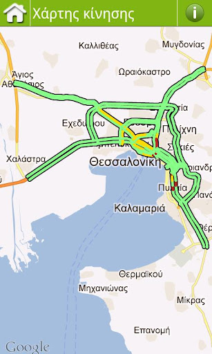 Χρησιμοποιεί υπηρεσίες ενημέρωσης κυκλοφοριακού φόρτου της Telenavis Hellas και προσφέρει την μεγαλύτερη δυνατή κάλυψη οδικού δικτύου στην πρωτεύουσα και την συμπρωτεύουσα. Αφού επιλέξετε πόλη, μπορείτε να ενημερωθείτε για την κίνηση μέσω τεσσάρων επιλογών. Στο «Με μια ματιά» εμφανίζονται πληροφορίες για την κίνηση κοντά στην περιοχή σας και στο «Συμβάντα» εμφανίζονται άλλα κυκλοφοριακά συμβάντα όπως ατυχήματα ή έργα.