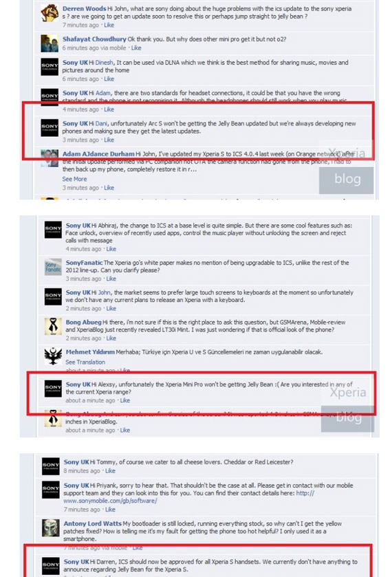 Μέσω του Facebook και του Xperia Blog, ο John Cooper, product manager της Sony, απαντώντας σε ερωτήσεις χρηστών, αποκάλυψε πως δυο μοντέλα της σειράς Xperia, τα Arc S και Mini, δεν θα αναβαθμιστούν σε Android Jelly Bean.