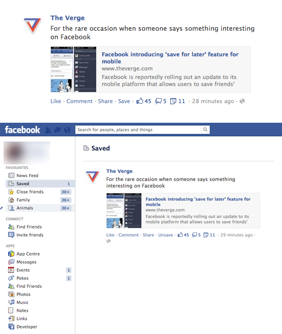Η δυνατότητα αποθήκευσης θα είναι αρχικά διαθέσιμη στο Facebook για iPhone και iPad, ενώ αργότερα θα ενσωματωθεί σε άλλες κινητές πλατφόρμες καθώς και στη desktop έκδοση του κοινωνικού δικτύου.