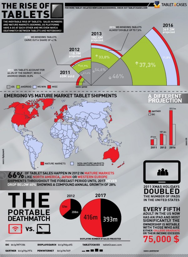 Μάλιστα σύμφωνα με τις σχετικές εκτιμήσεις μέχρι το 2017 οι πωλήσεις των tablets θα ξεπεράσουν σε τζίρο και χρήση τα laptops. Δεν αποκλείεται μάλιστα να αντικαταστήσουν και τελείως τα smartphone καθώς πολλοί τα παίρνουν μαζί τους όπου και αν πάνε γεγονός που μειώνει την εξάρτηση από αυτά. Όλα αυτά βέβαια μπορεί και να ανατραπούν από την κυκλοφορία των Google Glasses αλλά μέχρι τότε θα έχει περάσει αρκετός καιρός.
