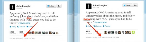 Μέχρι τώρα όταν κάποιος δημοσίευε από ένα τρίτο πρόγραμμα και όχι κατευθείαν από το Twitter, υπήρχε η ένδειξη «via». Για παράδειγμα ‘via Seesmic’. Πλέον έχει καταργηθεί όμως αφαιρώντας από τις υπηρεσίες αυτές μια πολύτιμη πηγή προβολής.