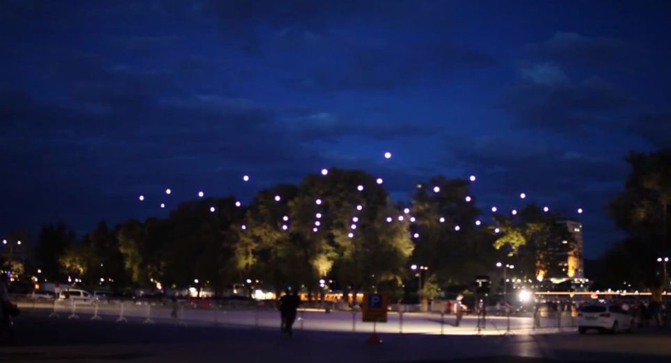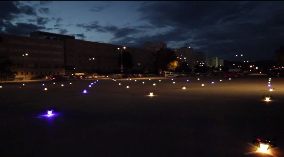 Όσο κι αν μοιάζουν για UFO έτοιμα να προσγειωθούν στη Γη, πρόκειται για μία επίδειξη με ελικόπτερα quadrocopters που πετάνε σε σχηματισμό.
