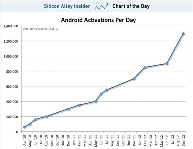 Ο πρόεδρος της Google, Eric Schmidt αποκάλυψε πως η Google ενεργοποιεί περίπου 1.3 εκατομμύρια συσκευές Android κάθε μέρα, αριθμός αισθητά μεγαλύτερος από τον Ιούλιο όταν ο αριθμός αυτός ανερχόταν στις 900.000.