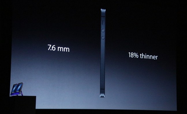 Στην εκδήλωση της Apple στο Σαν Φραντσίσκο παρουσιάστηκε το νέο iPhone, το οποίο θα έχει το όνομα «iPhone 5». Η νέα συσκευή θα είναι λεπτότερη και ελαφρύτερη με πάχος στα 7,6 χιλιοστά και βάρος στα 112 γραμμάρια, δηλαδή 18% πιο λεπτό από το 4S και 20% ελαφρύτερο.
