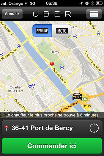 Ωστόσο η νέα app για smartphone με την ονομασία «Uber» φιλοδοξεί να διευκολύνει τα μάλα τη διαδικασία. Είναι ήδη διαθέσιμη για iPhone και Android devices, όπου όχι μόνο μπορείς να παραγγείλεις το μοτο-ταξί (και αυτοκίνητο ταξί εννοείται) στο Παρίσι, αλλά και να το πληρώσεις χρησιμοποιώντας την ίδια υπηρεσία. Ακόμη κι αν δεν έχεις καθόλου χρήματα επάνω σου, χρεώνεται αυτόματα στον λογαριασμό σου.