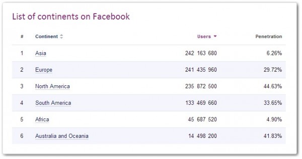 Συγκεκριμένα οι χρήστες του δημοφιλούς δικτύου που προέρχονται από την Ασία έχουν ξεπεράσει τα 242 εκατομμύρια. Περίπου μισό εκατομμύριο περισσότεροι δηλαδή από τους αντίστοιχους Ευρωπαίους.