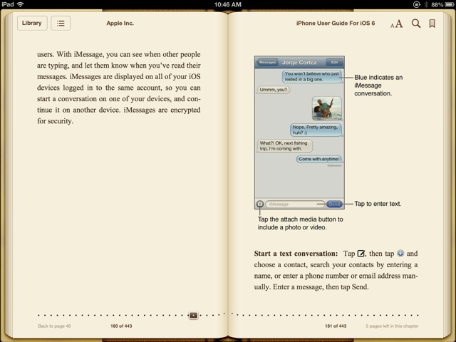 Το iPhone User Guide for iOS 6, μεγέθους 153 σελίδων χωρισμένων σε κεφάλαια, θα το βρείτε δωρεάν στο iTunes και μπορείτε να το διαβάσετε αποκλειστικά μέσω της εφαρμογής iBooks.