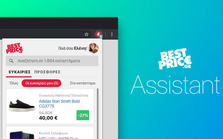 Με στόχο να διευκολύνει την έρευνα αγοράς των καταναλωτών, το BestPrice.gr προσφέρει τον νέο έξυπνο βοηθό «BestPrice Assistant», ένα «browser extension» για καλύτερες αγοραστικές επιλογές παντού online.