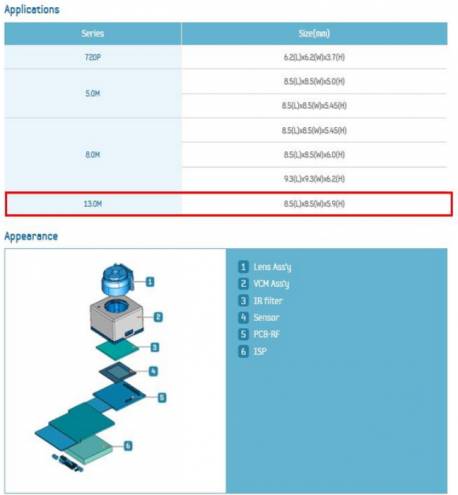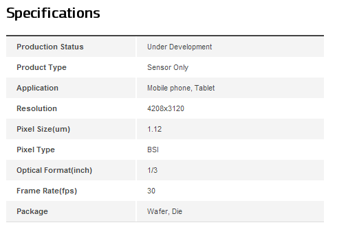 Οι πληροφορίες αυτές επιβεβαιώνονται, έστω και ανεπίσημα, από ανάρτηση της Samsung στην ιστοσελίδα των προϊόντων της. Εκεί κάνει την εμφάνιση του ένας αισθητήρας με το κωδικό όνομα S5K3L2, με ανάλυση 4208×3120 και δυνατότητα λήψης video με ταχύτητα 30 καρέ το δευτερόλεπτο. Βρίσκεται ακόμα στο στάδιο της ανάπτυξης και σύμφωνα με τις προδιαγραφές προορίζεται για χρήση σε κινητό τηλέφωνο ή tablet.