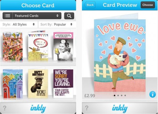 Το μόνο που έχετε να κάνετε είναι να επιλέξετε την κάρτα που θέλετε από την μεγάλη συλλογή του Inkly, να γράψετε το μήνυμα σας σε ένα λευκό κομμάτι χαρτί και να φωτογραφήσετε το μήνυμα μέσω του κινητού σας. Η εφαρμογή μετά αναλαμβάνει όλα τα υπόλοιπα: αφαιρεί το περιθώριο του χαρτιού, παίρνει το χειρόγραφο σας και το τοποθετεί μέσα στην κάρτα που επιλέξατε.