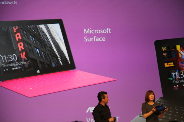 Μια τρίτη έκδοση, τα Windows 8 RT προορίζονται για την χρήση τους σε υπολογιστές που διαθέτουν επεξεργαστές ARM, όπως το Microsoft Surface, την πρώτη απόπειρα κατασκευής μιας Windows 8 συσκευής από την ίδια την εταιρεία, το οποίο παρουσιάστηκε από την Microsoft λίγους μήνες νωρίτερα. Η συσκευή θα πωλείται στα καταστήματα των Ηνωμένων Πολιτειών από αύριο, με τιμή που θα ξεκινά από τα 499 δολάρια.