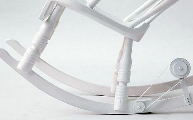 Η πολυθρόνα, που συνδυάζει το κλασικό στυλ της κινητής καρέκλας με τις νέες τεχνολογίες, χρησιμοποιεί μια ενσωματωμένη γεννήτρια που μετατρέπει την ταλάντευση σε ηλεκτρική ενέργεια.