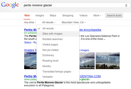 Μέσω της μπάρας αυτής οι χρήστες μπορούν να παραμετροποιήσουν την αναζήτηση τους σε διάφορες κατηγορίες, επιλέγοντας να αναζητήσουν μόνο εικόνες, χάρτες, βίντεο ή ειδήσεις και να κατηγοριοποιήσουν ανάλογα τα αποτελέσματα της αναζήτησης τους κατά είδος, τοποθεσία και χρόνο.