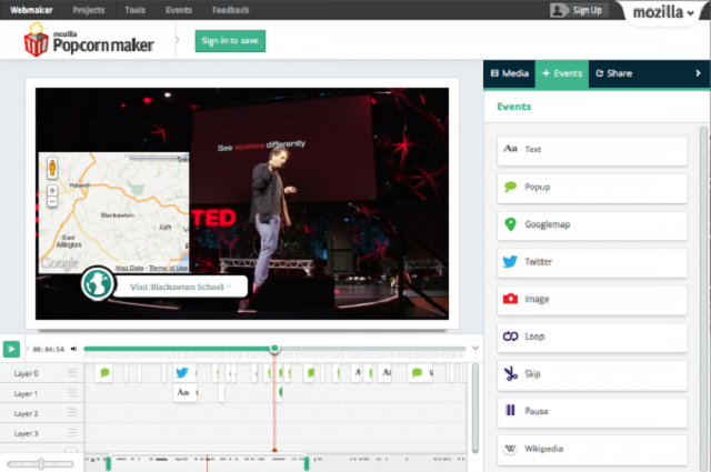 Στο πλαίσιο του Mozilla Festival στο Λονδίνο το προηγούμενο σαββατοκύριακο, η Mozilla κυκλοφόρησε την πρώτη έκδοση του «Popcorn Maker», ένα πρόγραμμα επεξεργασίας βίντεο το οποίο επιτρέπει την χρήση κειμένου, εικόνων και συνδέσμων για την δημιουργία ενός «διαδραστικού» βίντεο.