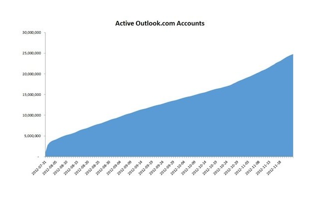 Η Microsoft αποφάσισε πριν περίπου τέσσερις μήνες να αντικαταστήσει το Hotmail με το Outlook.com και σήμερα ανακοίνωσε μέσω του Office Blog της πως η νέα υπηρεσία ηλεκτρονικού ταχυδρομείου της ξεπέρασε τα 25 εκατομμύρια χρήστες.