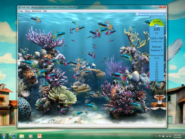 Κατά τη διάρκεια της παρουσίασης, που έγινε στο Design Concourse Center του Σαν Φρανσίσκο, ο αντιπρόεδρος του Internet Explorer, Dean Hachamovitch δήλωσε: «Ο browser είναι το σκηνικό του Ίντερνετ. Για αυτό το λόγο επανιδρύσαμε τον Internet Explorer, ο οποίος είναι πλέον συμβατός με τα νέα web standards, όπως το HTML5, αλλά έχει και τη δυνατότητα να μετατρέπει οποιαδήποτε ιστοσελίδα σε εφαρμογή του Windows taskbar».