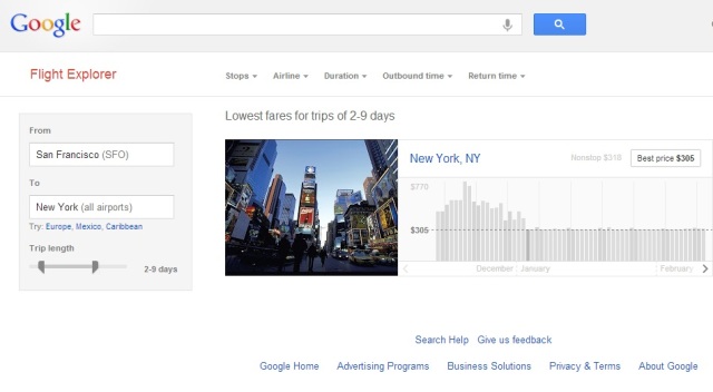 Με το νέο Flight Explorer, όμως, επιστρέφει στις υπηρεσίες αναζήτησης και μας παρουσιάζει, έστω και σε δοκιμαστική έκδοση, μία νέα μηχανή αναζήτησης πτήσεων.