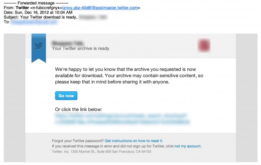 Ο χρήστης Navjot Singh επίσης σχολίασε στο Bolg του τη διαδικασία που χρειάζεται για να ενεργοποιηθεί η νέα λειτουργία, τονίζοντας πως «σύμφωνα με το Twitter θα σας σταλεί ένα email με ένα σύνδεσμο που θα παραπέμπει στο αρχείο των tweets σας όταν αυτό είναι έτοιμο. Λειτουργεί όπως ακριβώς και η αντίστοιχη υπηρεσία του Facebook, απλά λαμβάνετε το email και κάνετε download το .zip αρχείο. Το ιστορικό σας περιέχεται σε αυτό σε μορφή html».