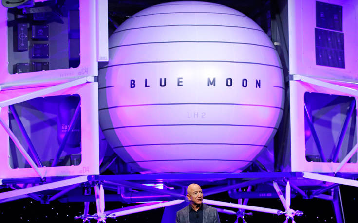 Το φυσικό ομοίωμα μιας νέας, μεγάλης και λαμπερής σεληνιακής ακάτου, της Blue Moon, με την οποία σκοπεύει να στείλει ανθρώπους στη Σελήνη έως το τέλος του 2024, παρουσίασε σε εκδήλωση στην Ουάσιγκτον ο Τζεφ Μπέζος. Αυτός είναι και ο φιλόδοξος -και για πολλούς υπεραισιόδοξος- στόχος της Αμερικανικής Διαστημικής Υπηρεσίας (NASA) και του προέδρου Τραμπ.