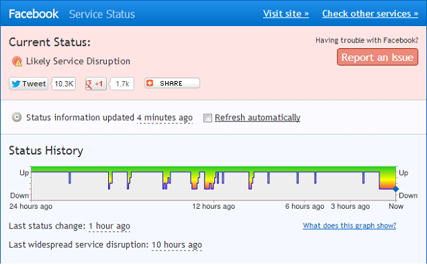 Προβλήματα στην λειτουργία του δημοφιλούς κοινωνικού δικτύου, Facebook, παρατηρήθηκαν πριν λίγα λεπτά, σύμφωνα με την ιστοσελίδα downrightnow.com , που συλλέγει δεδομένα από τους χρήστες της, τους χρήστες του Twitter αλλά και επίσημες ανακοινώσεις.