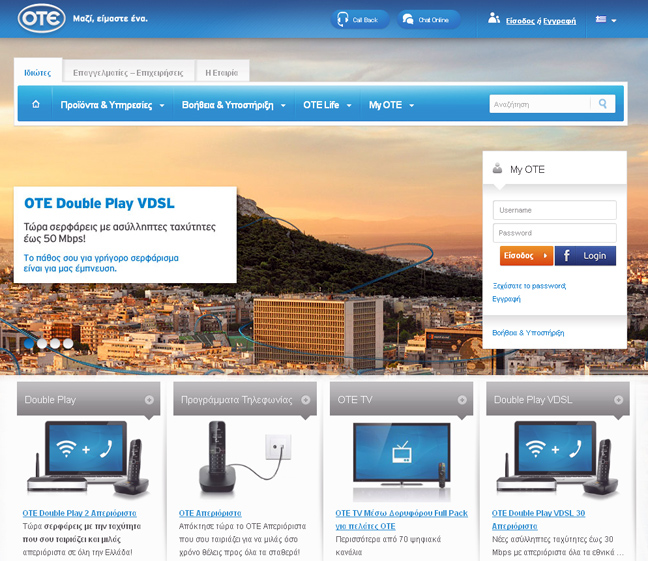Στο νέο site του ΟΤΕ όλοι οι πελάτες, Ιδιώτες, Επαγγελματίες ή Επιχειρήσεις, έχουν πλέον τη δυνατότητα να πραγματοποιήσουν online αγορές προϊόντων και υπηρεσιών, που έχουν σχεδιαστεί ειδικά για τις ανάγκες τους. Επιπλέον, μπορούν να φτιάξουν το δικό τους πακέτο υπηρεσιών, όπως ακριβώς το θέλουν κάνοντας τους δικούς τους συνδυασμούς υπηρεσιών.