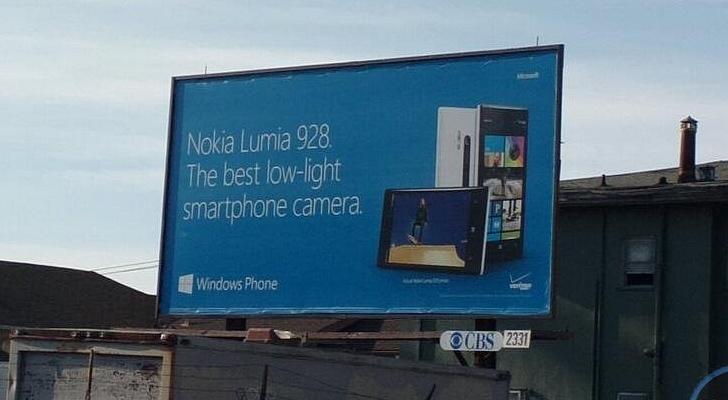 Έτσι εν όψει του λανσαρίσματος του Lumia 928 αποκαλύφθηκε μια έντυπη διαφημιστική καταχώρηση της αμερικανικής Verizon στο περιοδικό Vanity Fair, αλλά και μια γιγαντοαφίσα επίσης με το logo της Verizon (τηλεπικοινωνιακός πάροχος στις Η.Π.Α.), που το απεικονίζουν -έστω και εν μέρει.Πριν μερικές ώρες, μάλιστα, ενεργοποιήθηκε και ένα teaser site της Nokia, που μπορείτε να δείτε εδώ.