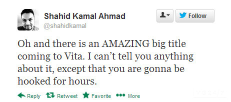 Έτσι, ούτε λίγο ούτε πολύ, έκανε γνωστό ότι ένας μεγάλος τίτλος καταφθάνει στο PS Vita, χωρίς να είναι σε θέση να αποκαλύψει κάτι περισσότερο.