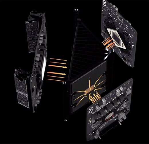 Το καινούριο Mac Pro έχει μόλις το 1/8 του όγκου του προηγούμενου μοντέλου, παρότι προσφέρει 7 teraflops υπολογιστικής ισχύος και είναι αισθητά ταχύτερο.