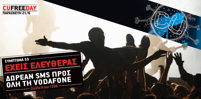 Όλοι οι συνδρομητές CU έχουν «ελευθέρας» και μπορούν να στέλνουν όλη μέρα δωρεάν sms σε όλη τη Vodafone. Το μόνο που χρειάζεται είναι να στείλουν από σήμερα Ν στο 1398, χωρίς χρέωση και θα έχουν δωρεάν sms με το που αλλάζει η μέρα.
