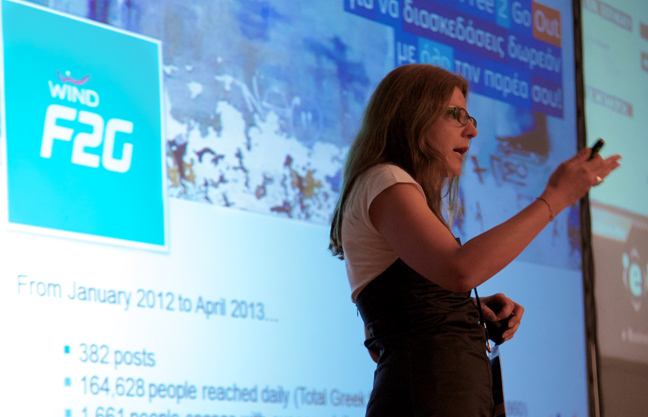Στην παρουσίασή της η Χριστίνα έδωσε χαρακτηριστικά παραδείγματα τρόπων αύξησης της αναγνωσιμότητας και engagement του κοινού με το brand μέσω της σωστής χρήσης των social media.