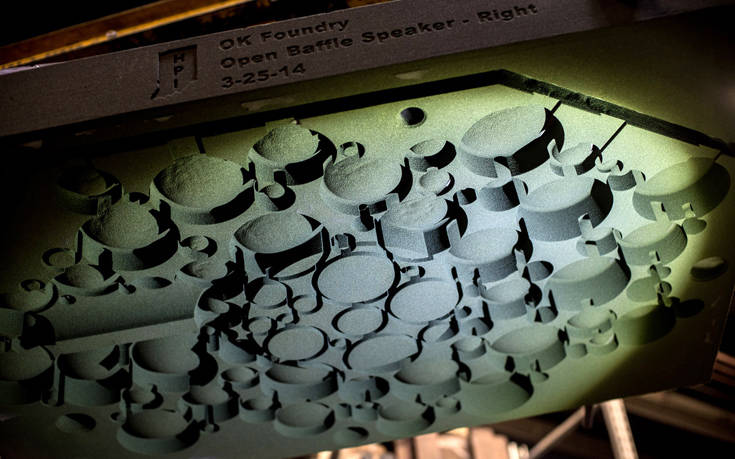 Τα καλούπια τυπώνονται τρισδιάστατα με άμμο και καταστρέφονται στη διαδικασία, κι έτσι κάθε ηχείο απαιτεί την ίδια κατεργασία από την αρχή.
