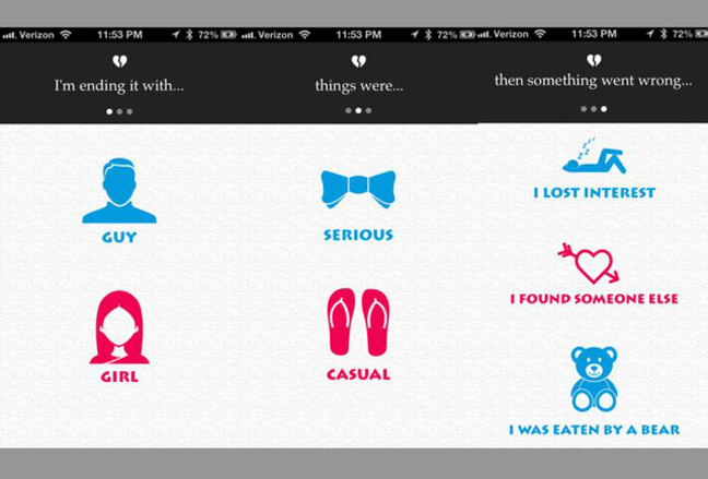 Εκεί που το «σχόλασμα» μέσω γραπτού μηνύματος είναι μια πράξη που προσιδιάζει συνήθως σε δειλούς, μια νέα εφαρμογή έρχεται να καταστρατηγήσει τα «πρέπει» της ερωτικής συμπεριφοράς.