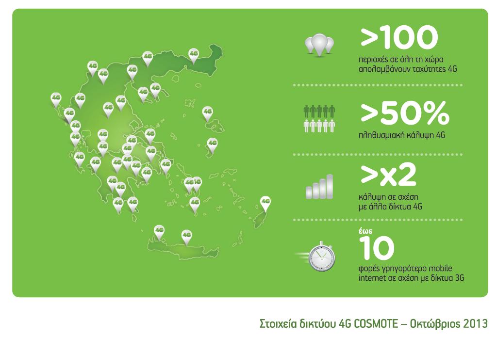 Υπενθυμίζεται ότι η COSMOTE δίνει τη δυνατότητα σε όλους της συνδρομητές της με συσκευές 4G να ενεργοποιήσουν εντελώς δωρεάν την πρόσβαση στο δίκτυο 4G έως τις 31/10/13.