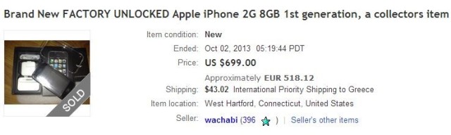 Αυτήν την εποχή, το eBay «βράζει» από δημοπρασίες του iPhone 2G, το οποίο δείχνει να μαγνητίζει τους ανά τον κόσμο συλλέκτες. Αν έχετε στην κατοχή σας μια τέτοια συσκευή σε άριστη κατάσταση, μπορείτε να διεκδικήσετε από 700 έως 1.200 δολάρια.