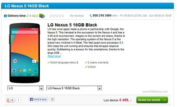 Εν τω μεταξύ, η Ολλανδία δείχνει να βιάζεται να αποκτήσει το Nexus 5 μια ώρα αρχύτερα. Πως αλλιώς να εξηγήσουμε το γεγονός ότι ο πάροχος Belsimpel παρουσίασε ήδη τη συσκευή προς πώληση στο επίσημο site του; Και η τιμή αυτού 459 ευρώ χωρίς συμβόλαιο.