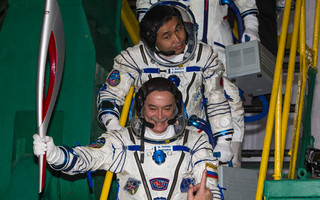 Εκτοξεύτηκε από τις στέπες του Καζακστάν το Σογιούζ, το οποίο, για πρώτη φορά στην ιστορία, θα μεταφέρει στο διάστημα την Ολυμπιακή δάδα, σύμφωνα με εικόνες που μετέδωσε η ρωσική τηλεόραση.