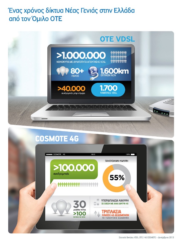 Ένα χρόνο από την εμπορική διάθεση δικτύων νέας γενιάς συμπλήρωσε ο όμιλος ΟΤΕ, καθώς στα τέλη του 2012 ο ΟΤΕ προσέφερε στους καταναλωτές υπηρεσίες VDSL και η COSMOTE διέθεσε πρώτη στην Ελλάδα δίκτυο 4G.