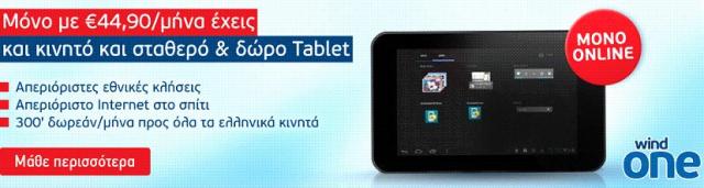 Συγκεκριμένα, όσοι ενεργοποιήσουν μία νέα σύνδεση στο πρόγραμμα WIND ONE αποκτούν αυτομάτως το tablet, αξίας 90 ευρώ.