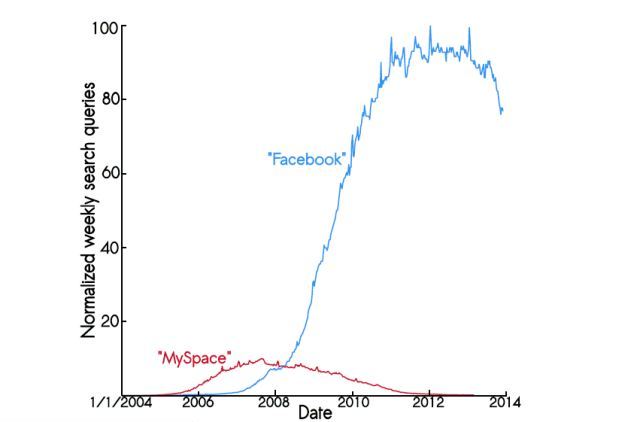 Όπως επισημαίνουν οι δύο αμερικανοί μηχανικοί, αν κανείς μελετήσει πώς εξελίχτηκε διαχρονικά ο αριθμός των αναζητήσεων για τη λέξη «MySpace» στη Google, μπορεί να διαπιστώσει τη σταδιακή μείωση του ενδιαφέροντος των χρηστών και έτσι να προβλέψει την τελική εξαφάνισή του. Μια ανάλογη «καμπύλη» φαίνεται να διαγράφουν τώρα πια και οι αναζητήσεις για το Facebook στην Google.